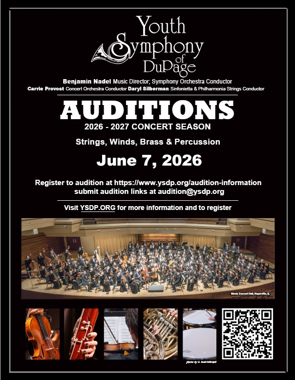 Auditions for the current 2025–2026 season are now closed to the general public. However, students recommended by a private teacher, school music director, or the YSDP director may still audition during the current performance season. Click the poster or visit ysdp.org/audition-information.
